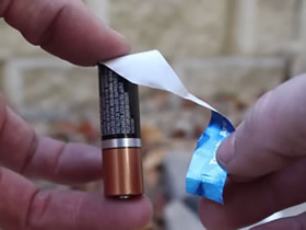 口香糖锡纸和电池取火的小实验 太神奇了!