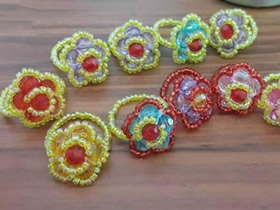 这里准备了6个珠子,分成红色和蓝色两种色彩,按照从大到小的顺序穿入。