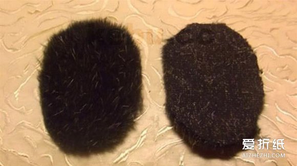 剪出同样大小的两块毛皮,缝合在一起,中间填棉花。